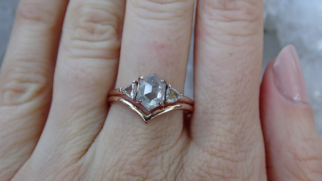 Ready to Ship: 6-prong Salt and Pepper Hexagon Diamond RingReady to Ship: 6-prong Salt and Pepper Hexagon Diamond Ring